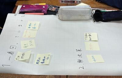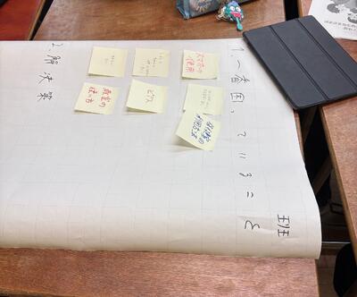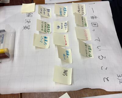 生徒たちは「守ってほしい校則」と「その解決案」を模造紙に付箋でまとめ、全体発表をしました。