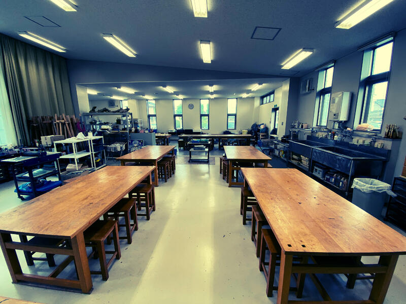 本校舎から少し離れた東側に、ひときわ存在感を放つ大きな美術棟がある。天井は高く、奥行きはキャッチボールができるほどに広い。L字型の空間の奥には、美術棟の空気を一気に吸い込んでしまいそうな窯(かま)が、時折ゴウゴウとうなりを上げながら、主(ぬし)のようにどっしりと鎮座している。
