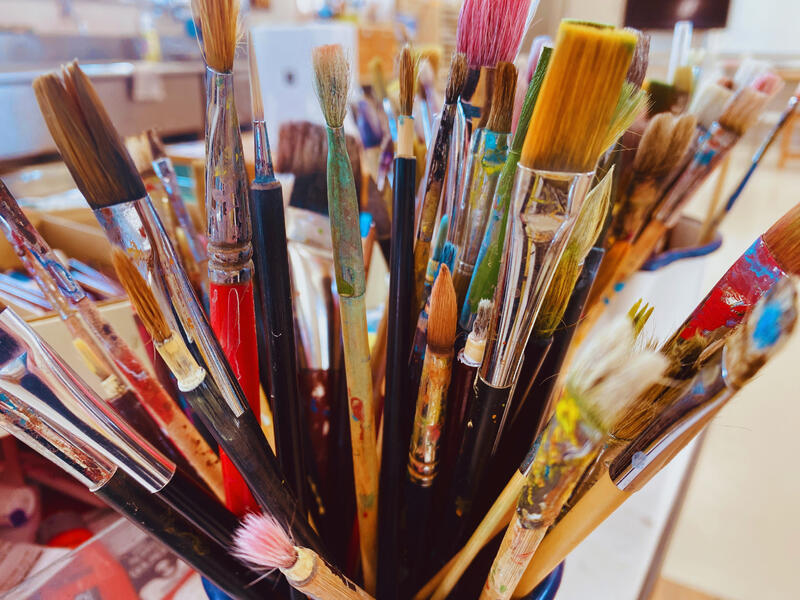 ろくろやプレス機、無骨な電動工具。整然と並ぶイーゼルは、まるで主を守る護衛兵のようだ。何十色もの絵の具、研ぎ澄まされた鉛筆。そして、先輩たちの情熱が染み付いた、絵の具の飛び散る巨大なテーブル……。